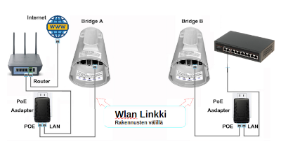 Rayee verkkosilta 300 mb siirto aina 500 m. saakka. Näköyhteys linkkien välillä, niin yhteys on vakaa. Sisältaa passivisen POE virtalähteen, linkillä nettiyhteys kameroille jatietokoneille rakennusten välille ilman ojankaivua, Hinta parille (lähetin vastaanotin pari). Tämän tuotteen saa myös asennettuna tai valmiiksi paritettuna, pyydä tarjous.